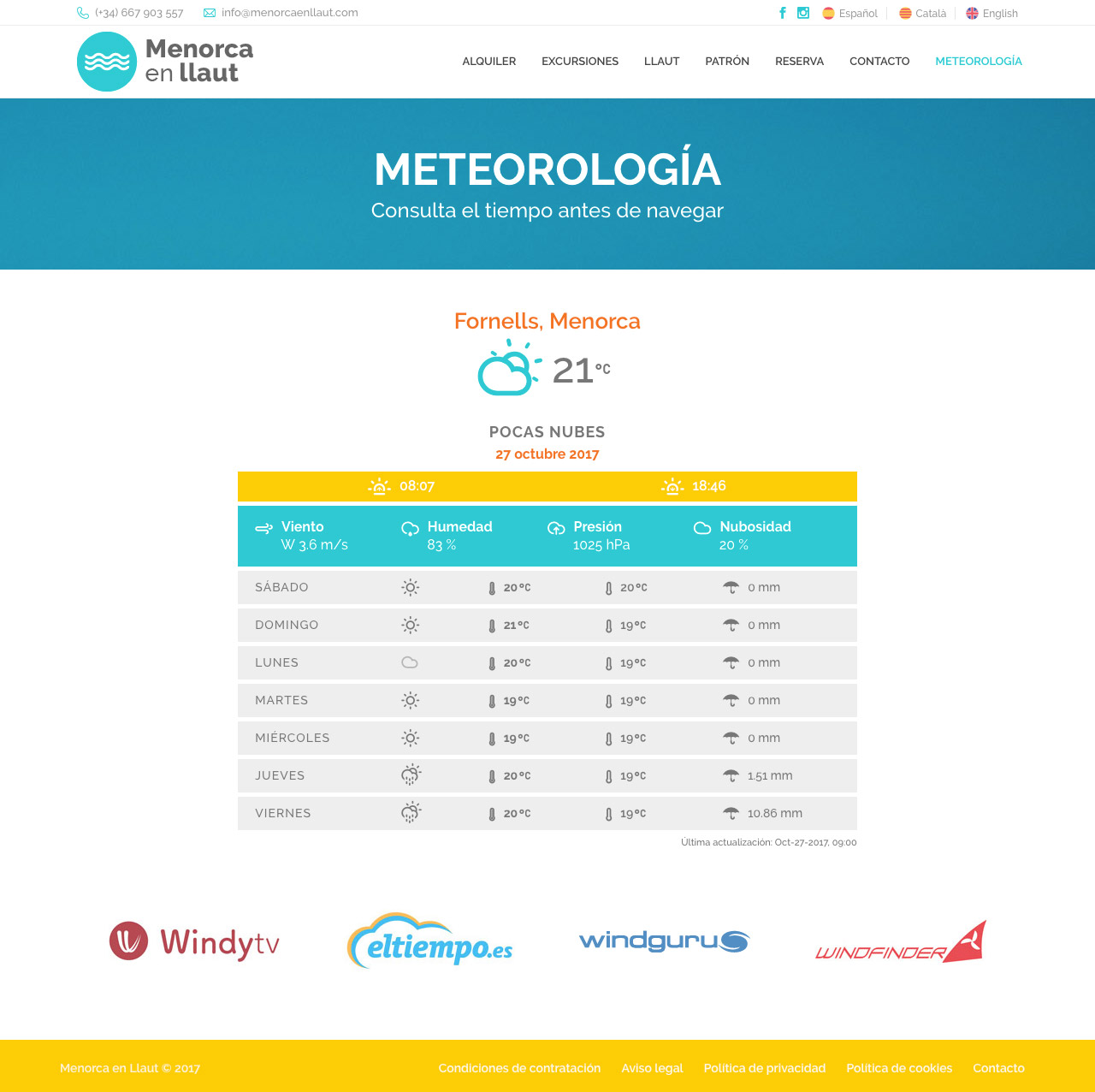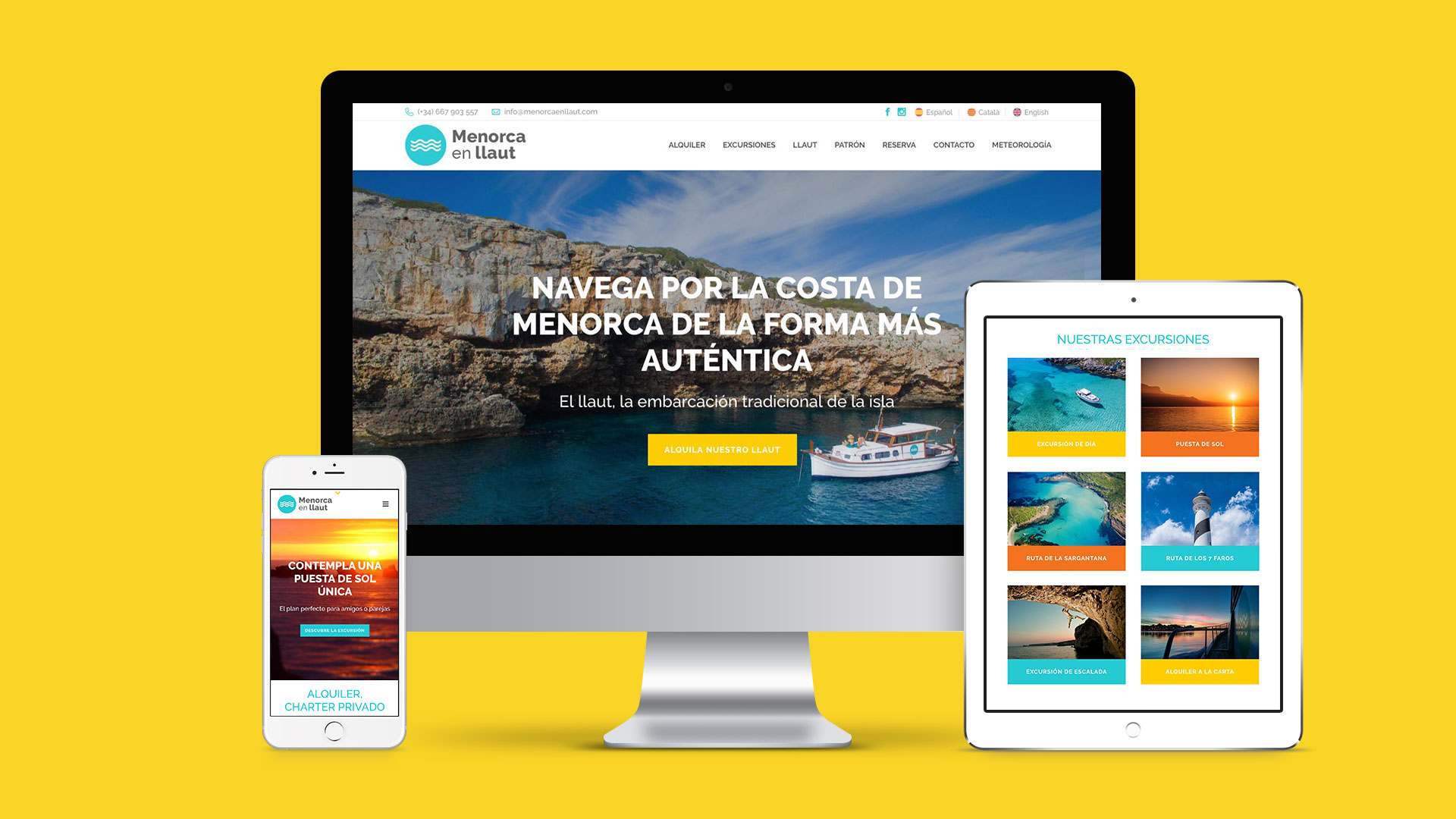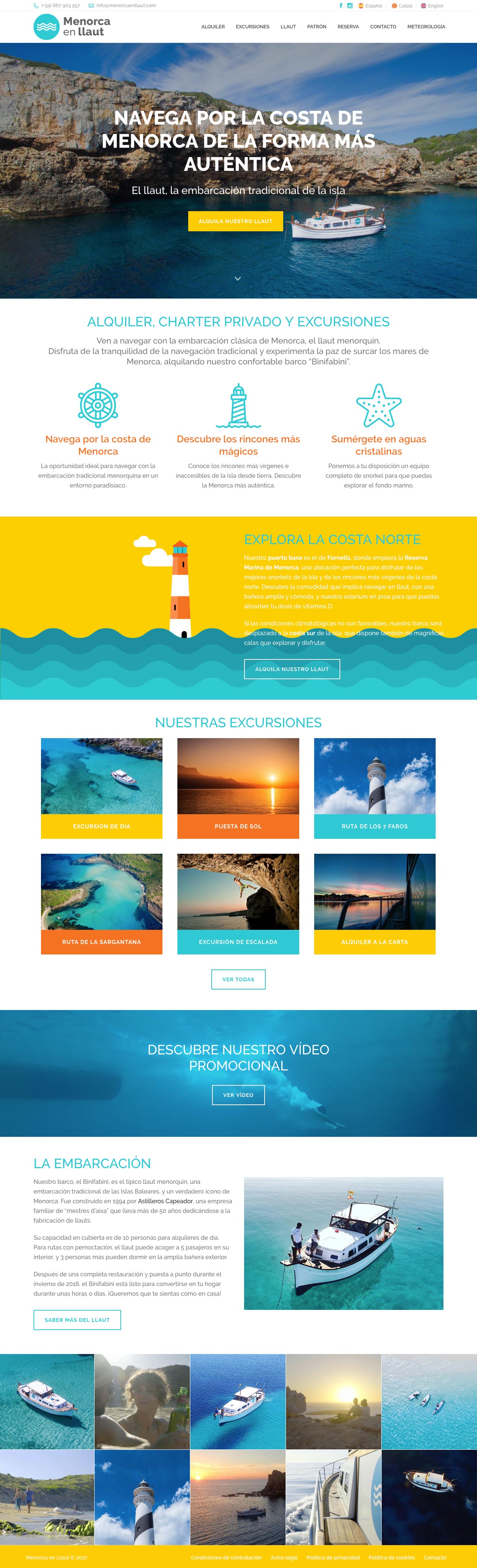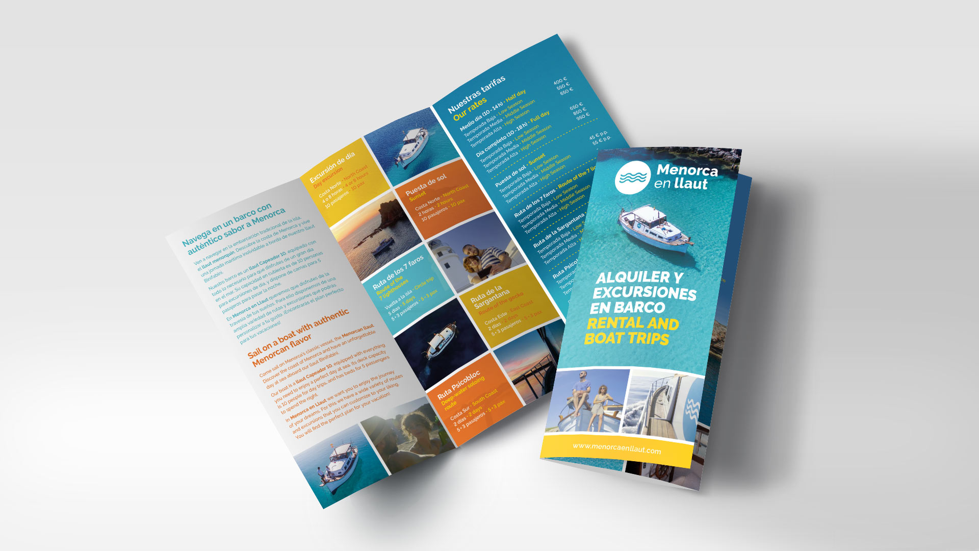 Menorca en llaut és una petita empresa de lloguer i excursions en llaüt, l’embarcació tradicional de Menorca. Creació del nou codi gràfic i cromàtic de la marca. Disseny de la papereria corporativa i desenvolupament de fulletons i altres peces de comunicació.