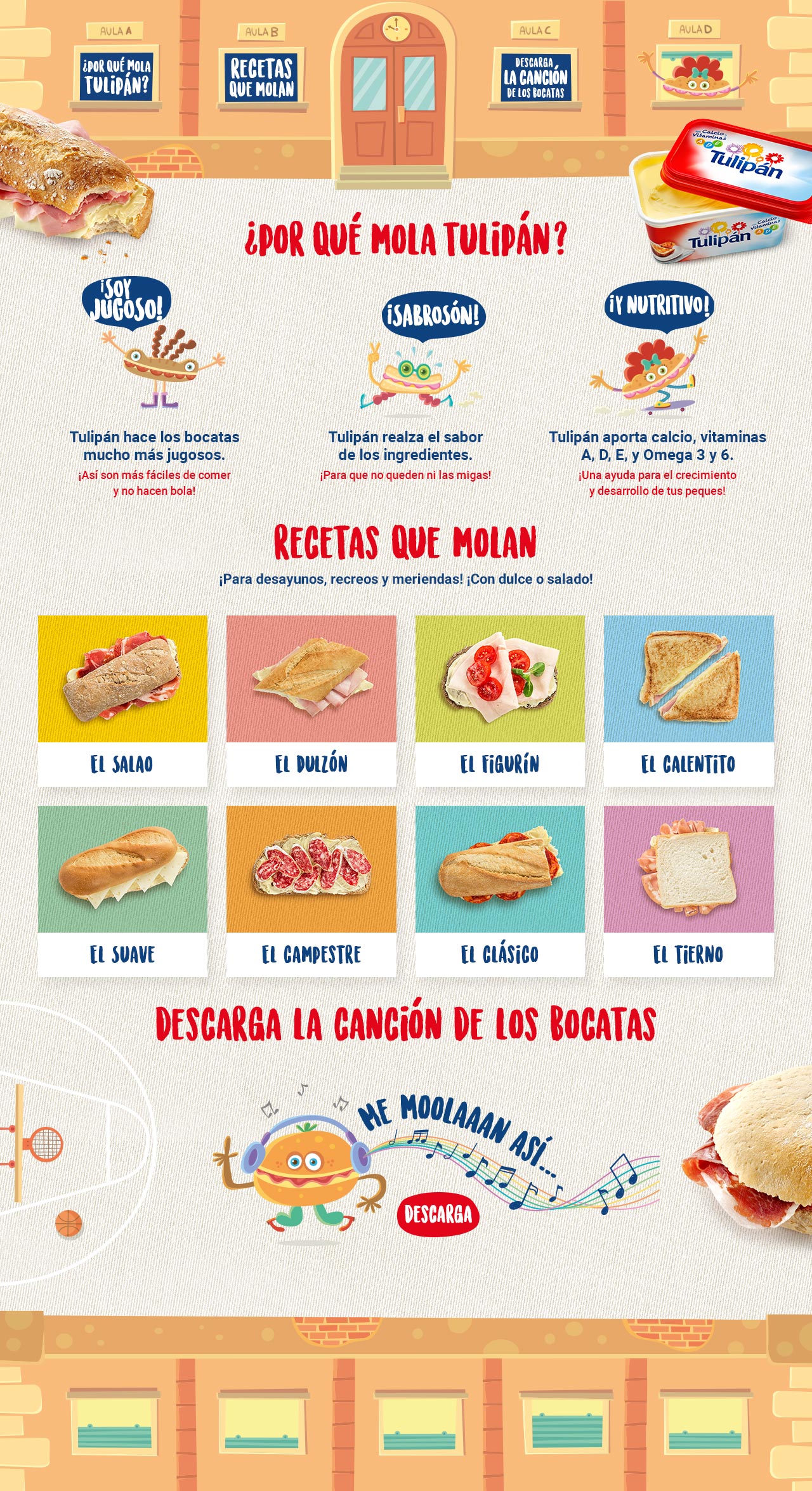 Disseny de la landing page de la campanya “Los bocatas que molan no hacen bola”, de la marca d’alimentació Tulipán. Projecte realitzat en col·laboració amb l’agència de comunicació Compact FMRG.