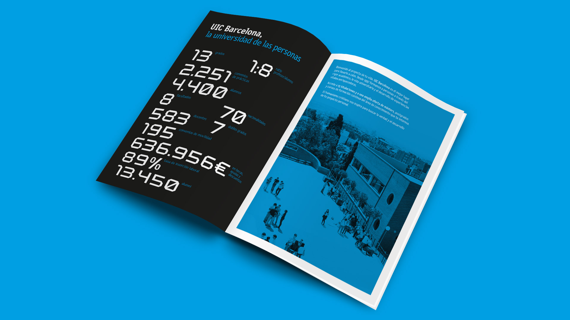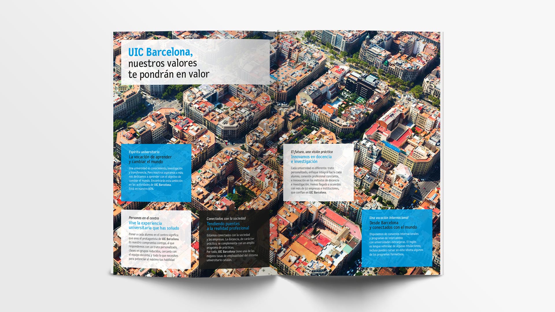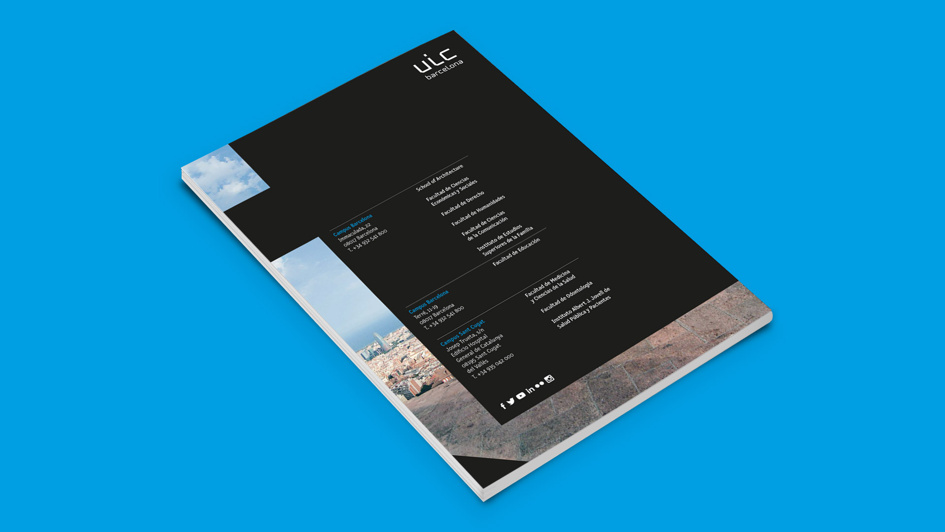Proposta de disseny de fulletó corporatiu per a futurs estudiants de la universitat UIC Barcelona. La peça conté informació bàsica relativa al procés d’admissió, i una pestanya contenidora per adjuntar les fitxes dels diferents graus o postgraus.